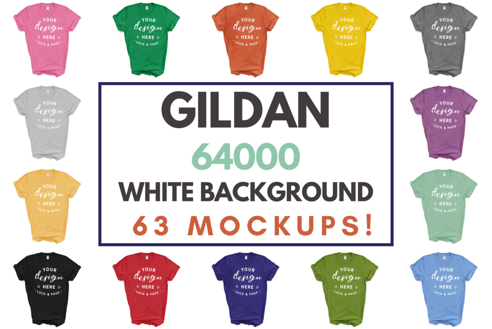 This clean and simple Gildan 64000 T-Shirt mockup MEGA BUNDLE features all 63 official Gildan 64000 colors on a clear white background. With no props or clutter to distract the eye, your designs will have the space to breathe and stand out.